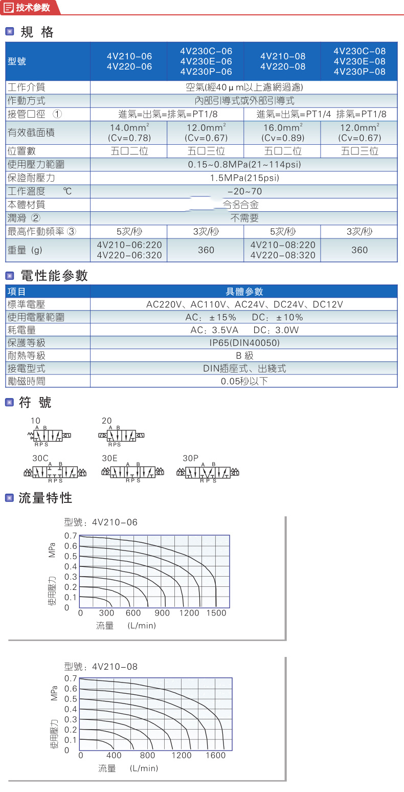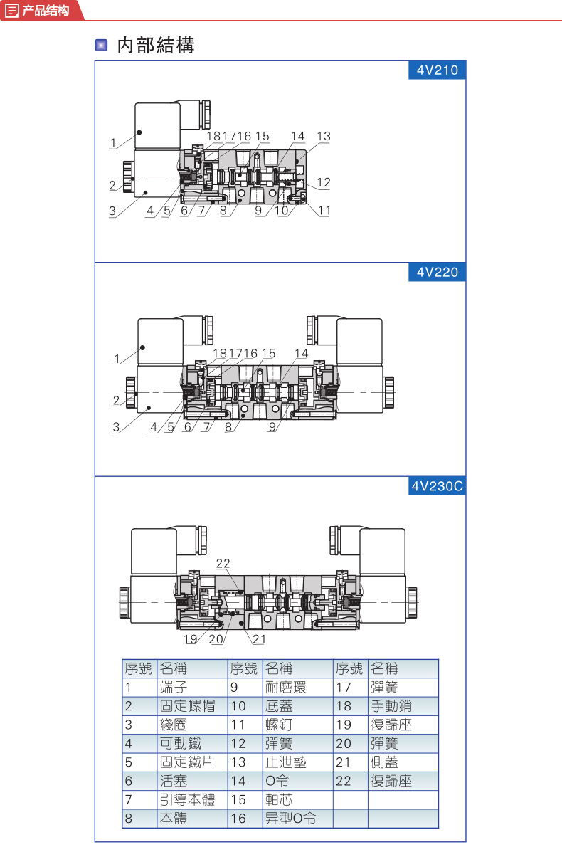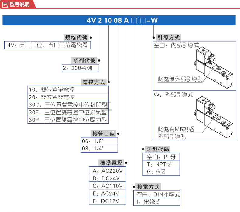 亞德客 內部先導式 電磁閥 2位5通 單電控產品型號: